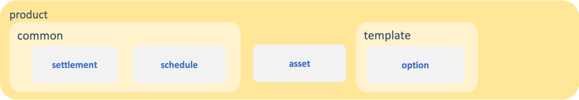 - Product -- contains generic product concepts: quantity, price, economic terms and payout, that are built using template features