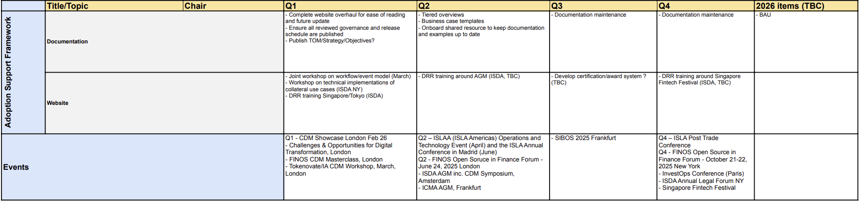 • The latest CDM roadmap of expected contributions sponsored by the presently participating trade associations: ICMA, ISDA and ISLA can be found under Roadmap .